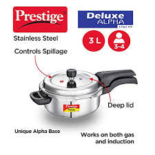 Prestige 3L Alpha Deluxe Induction Base Stainless Steel Pressure Cooker, 3.0-Liter