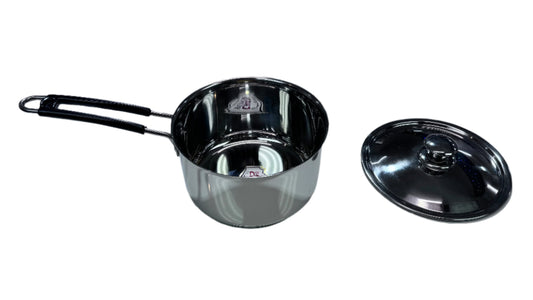 Black Chef Stainless Steel Milk Pan / Sauce Pan with lid - Induction base, 20cm.